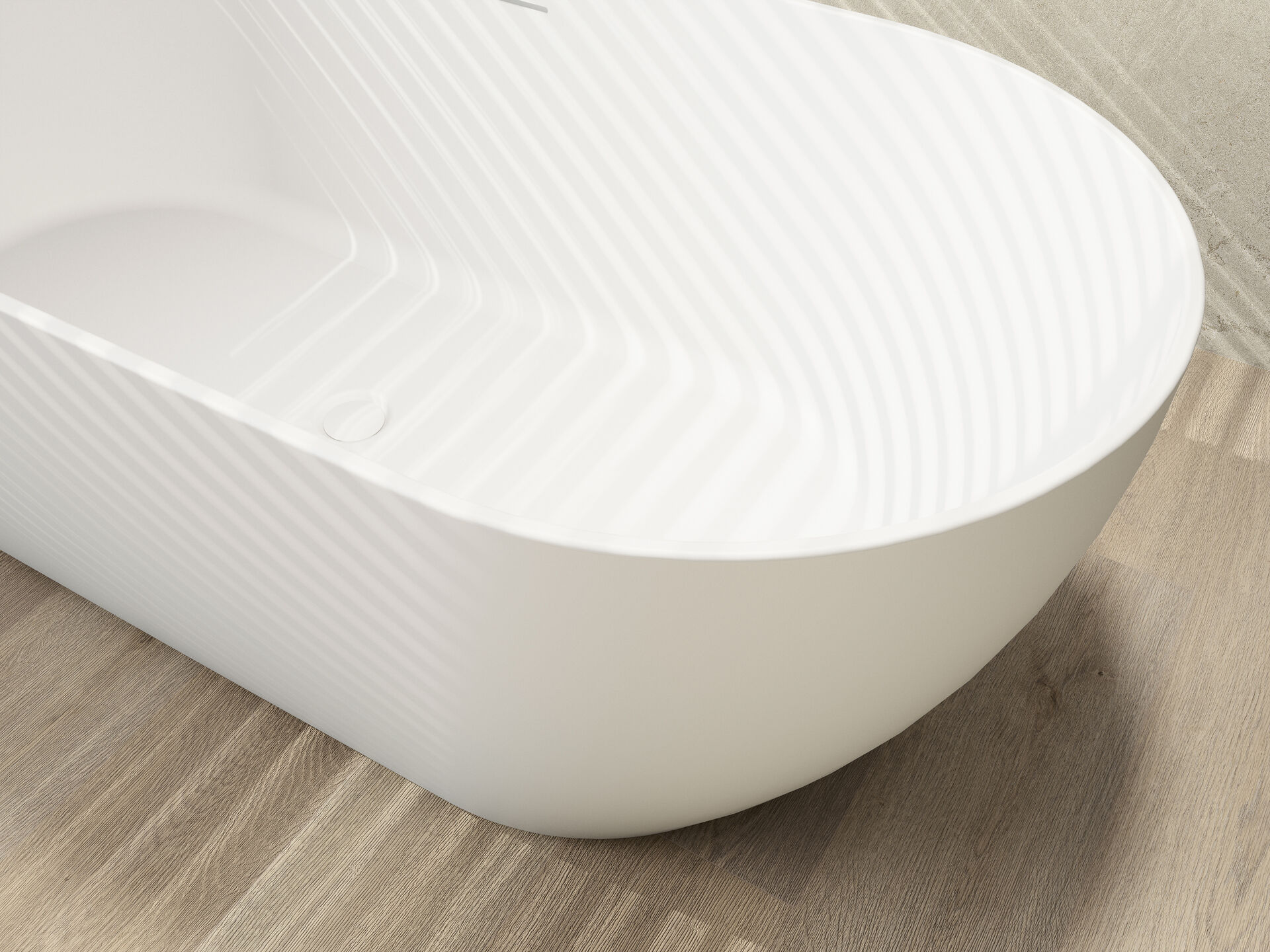 The Nova freestanding bathtub is an invitation to pure wellness. Made of acrylic, its soft curves and the subtle engraving on its surface give it a unique character, combining beauty and comfort. Available in glossy white and matte white, its oval design transforms any space into a haven of calm. Complement it with the Halo freestanding bathtub faucet for a contemporary and elegant touch of distinction.