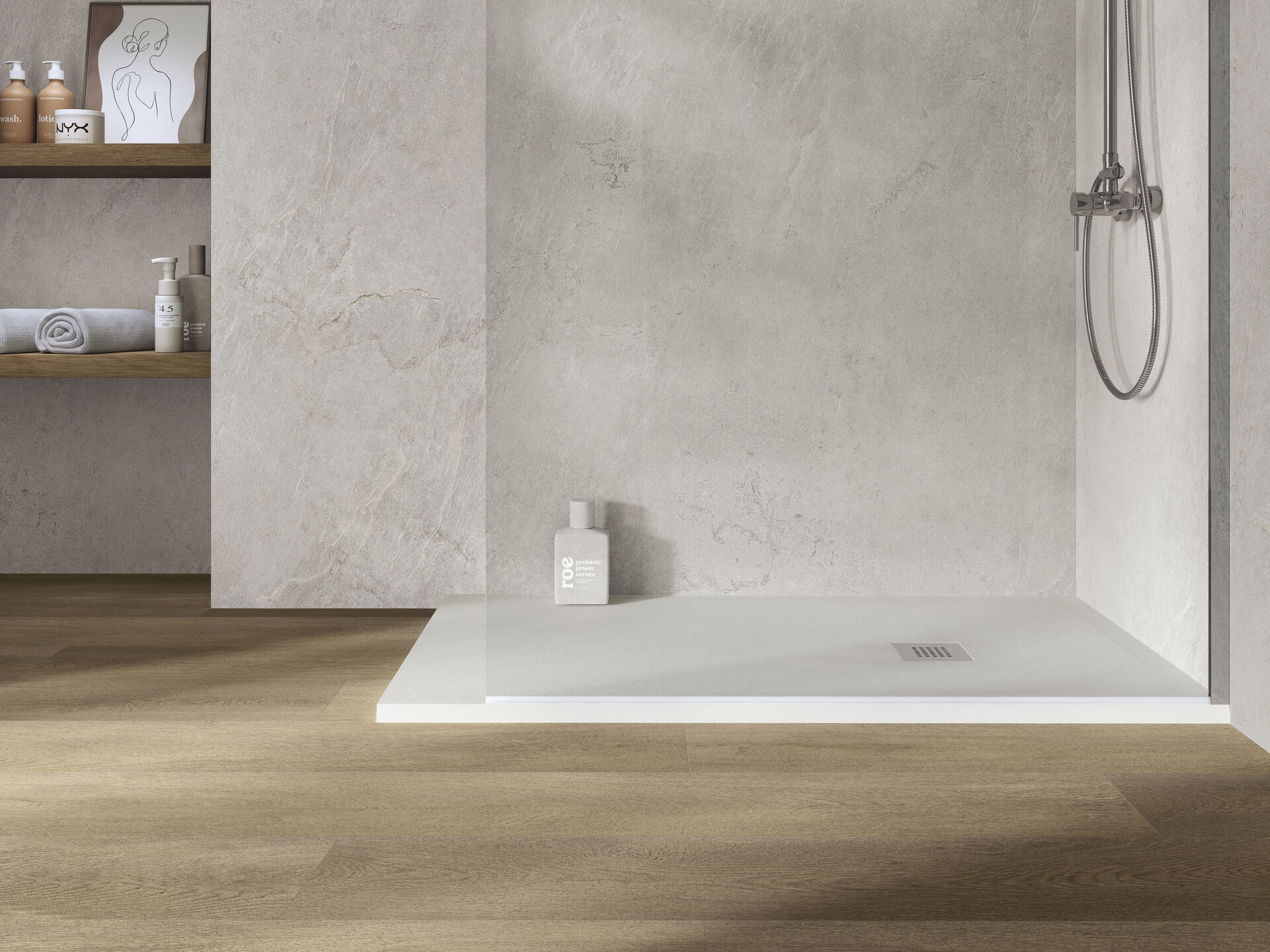 Drift is characterized by its granite finish, which provides a smooth and non-slip texture ideal for exclusive bathroom spaces. With a range of natural and versatile colors, this shower tray stands out for its refined aesthetics and maximum resistance with gel coat finish. Available in various dimensions and installation options, Drift guarantees adaptability and an ideal shower space.