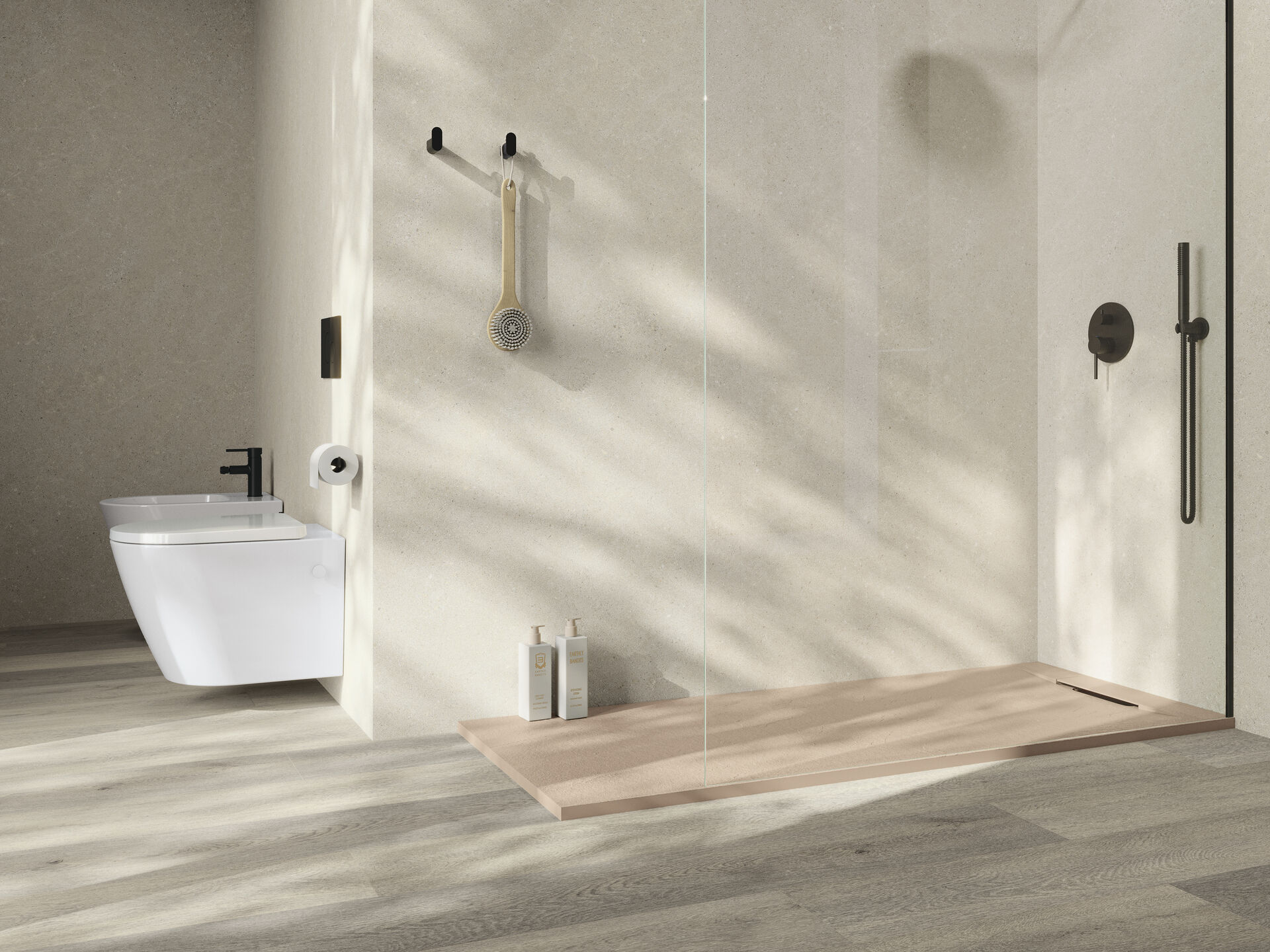 Mist offers a shower solution that unites subtle design and maximum technical precision thanks to its gel coat finish. Its slate texture provides a unique sensory experience, bringing safety and comfort underfoot. With a wide range of colors, from neutral tones to more intense finishes, it adapts to any style. Its integrated drainage system ensures a clean and continuous aesthetic, standing out for its minimalism and contemporary functionality.